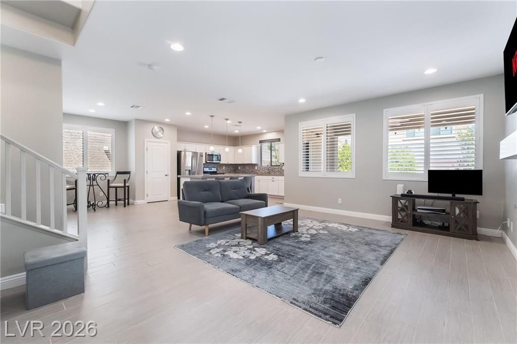 Located within guard-gated Rhodes Ranch golf course community, this beautifully maintained home offers the perfect blend of comfort, style & thoughtful design. Gated, enclosed courtyard opens to a highly upgraded turn key home boasting over 100K in premium enhancements. Kitchen serves as a centerpiece ft quartz countertops, stainless steel appliances & island w elegant pendant lights that connects to the main living & dining areas. Great room is anchored by a fireplace creating ambiant relaxing evenings. Elegant finishes continue w shutters, 5-inch baseboards, newer floors & designer fixtures that elevate the space. Spacious primary suite offers a relaxing retreat w walk-in closet & spa-inspired bath complete w soaking tub & shower. Add'l highlights include low maintenance backyard w covered patio, water softener system & storage throughout. Residents enjoy access to resort-style amenities including community pool & spa, water park, fitness center & a vibrant calendar of activities